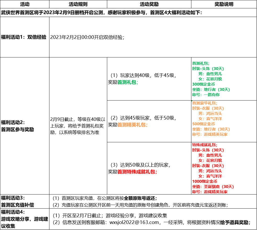 定于2023年2月11日14:00公测一区开启;首测区玩家补偿福利如下: