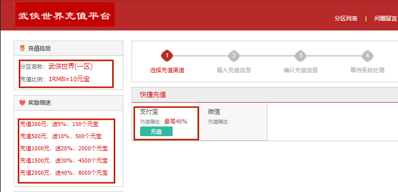 庆祝游戏公测开启,充值赠送比例提升;同时为了让更多玩家回归武侠世界,增加累计充值赠送首测礼包福利活动,详情如下: