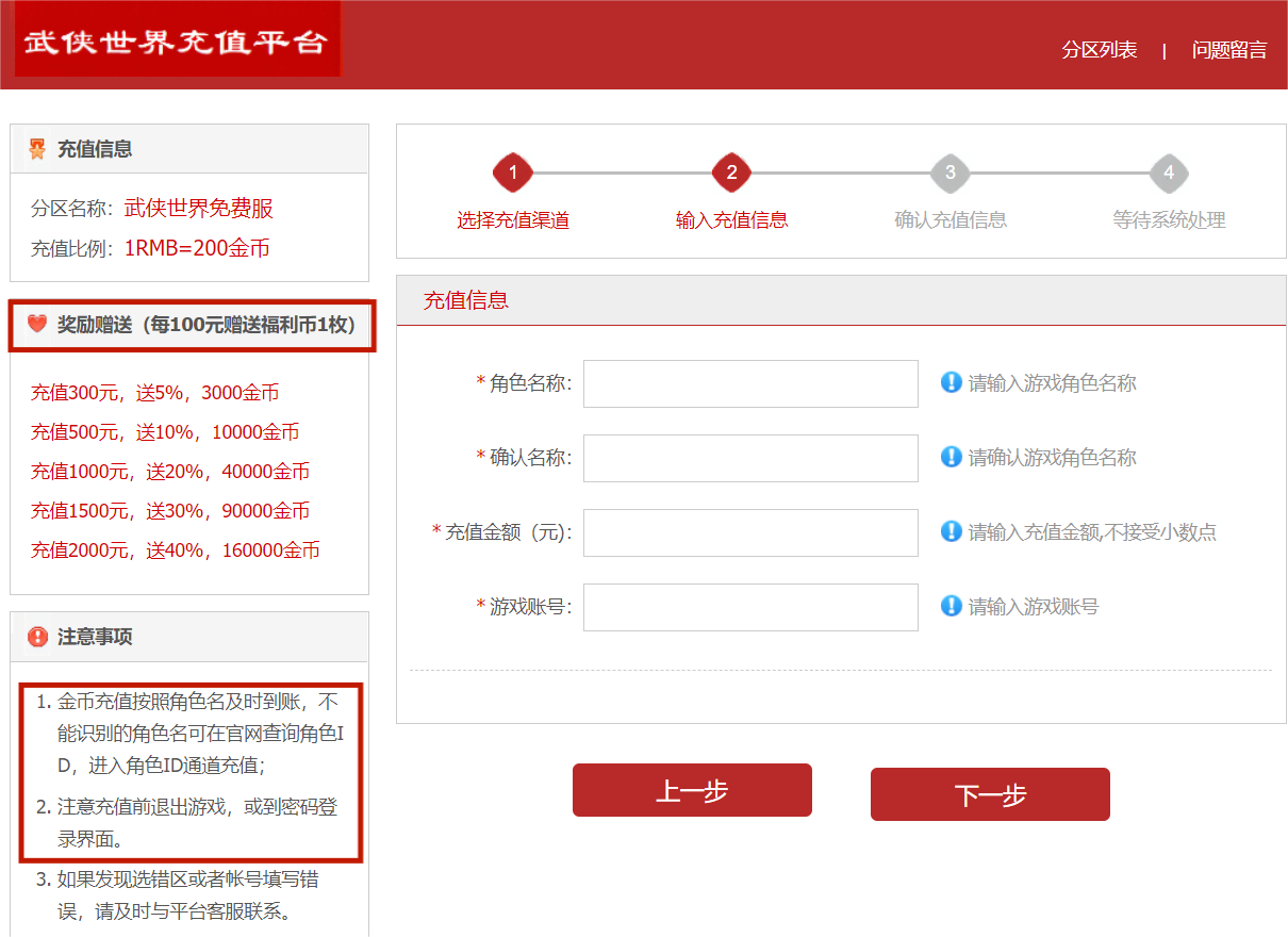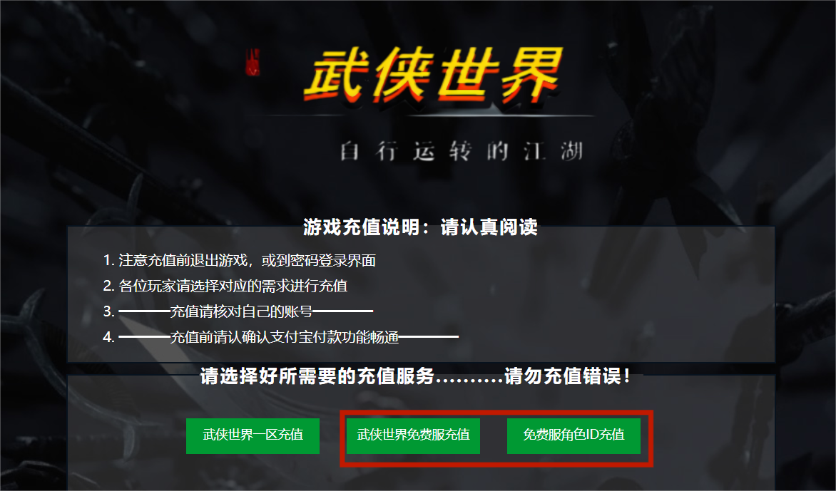 【武侠世界免费服】充值通道开通:
