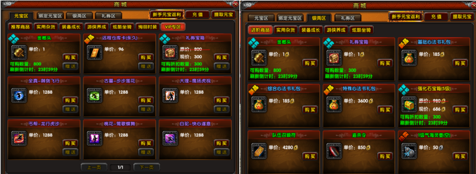新人区充值100元=20万高倍元宝福利,每充值100元赠送2枚武侠福利币;