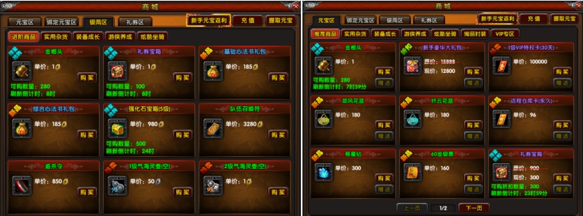 商城火力全开,每日抢购玩法升级:1金币金榔头和礼券宝箱福利抢购;1元宝多种物品抢购;