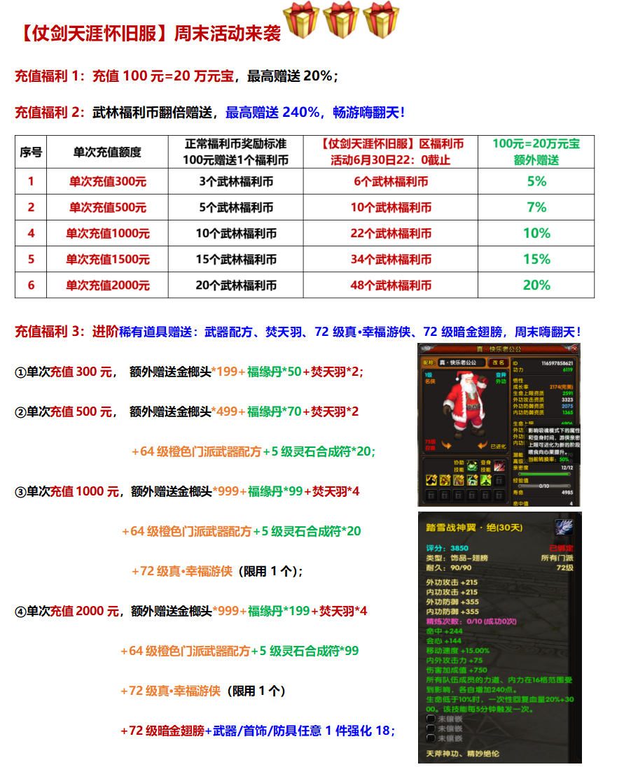 【仗剑天涯怀旧服】72级开放与充值福利来袭