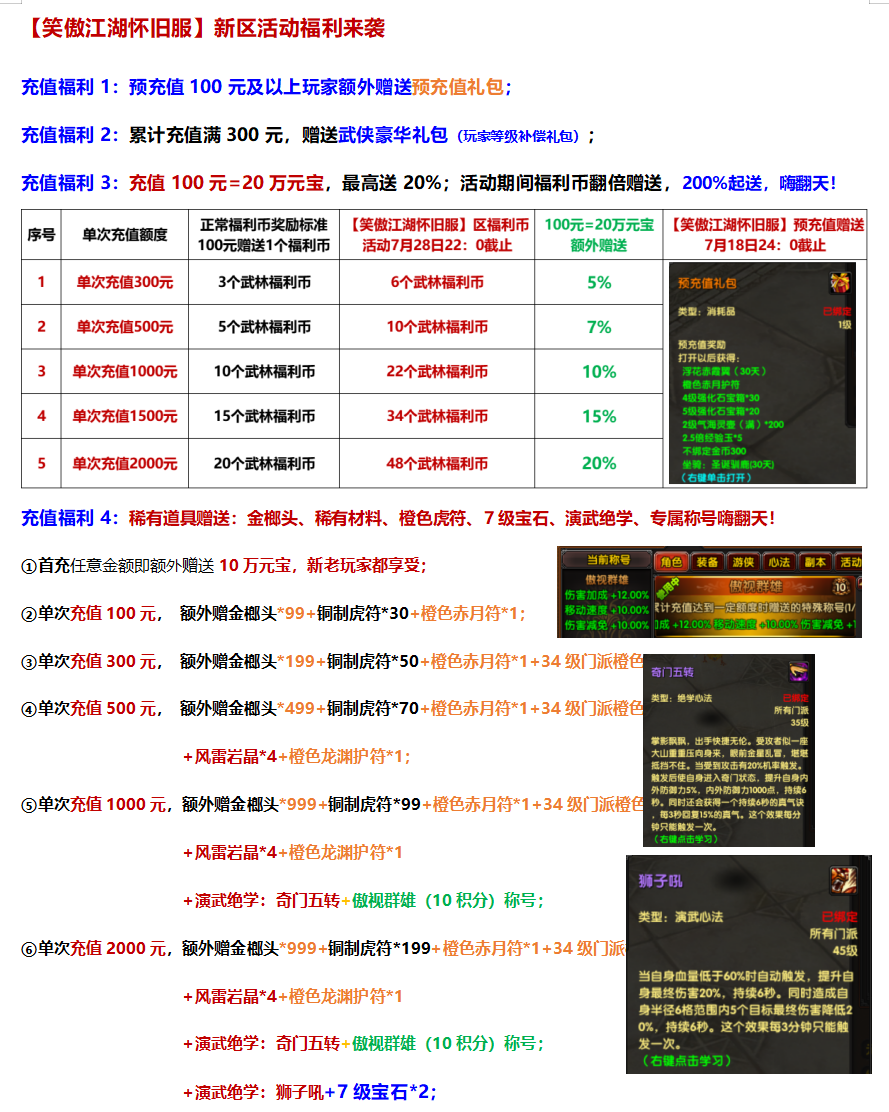 【笑傲江湖怀旧服】新区充值福利来袭