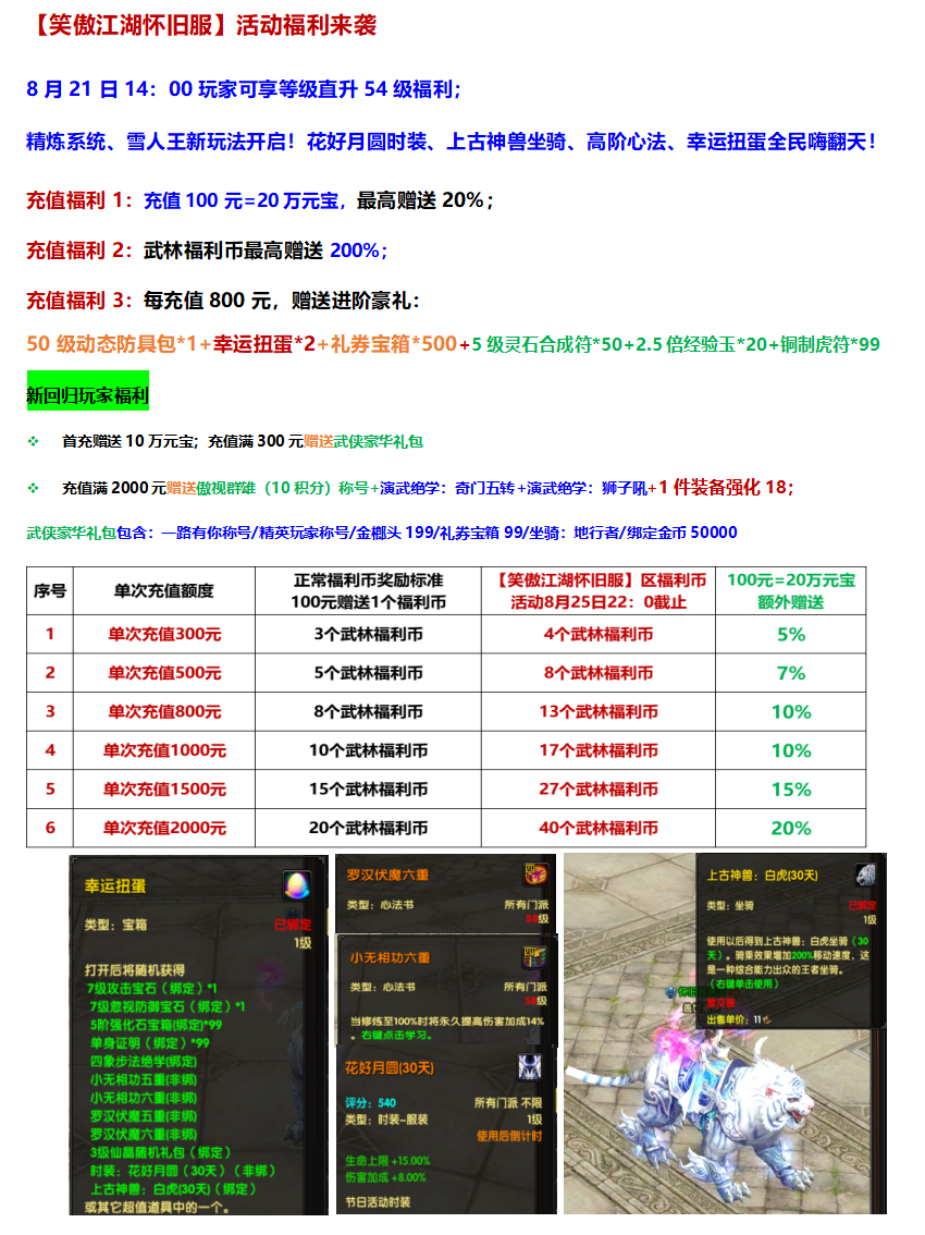 【笑傲江湖怀旧服】直升54级活动福利来袭