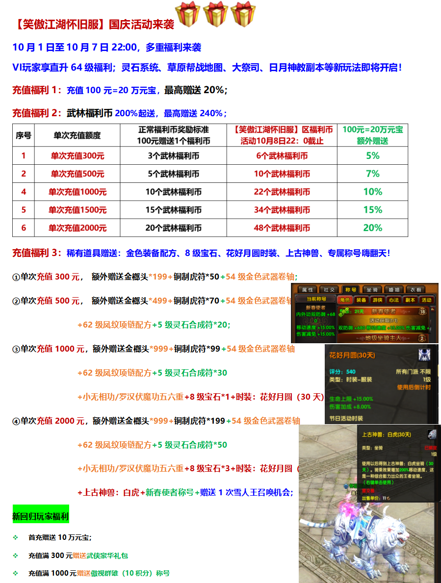 欢度国庆,【笑傲江湖怀旧服】活动来袭