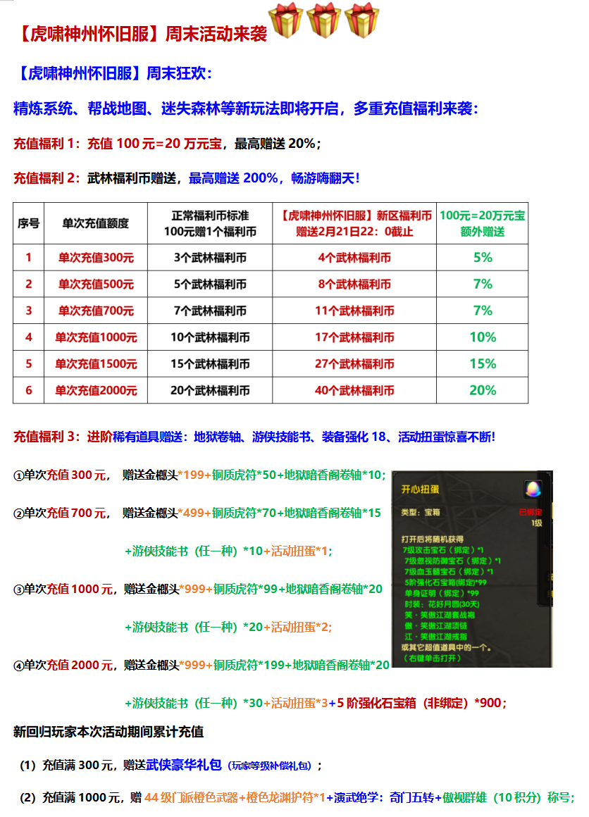 【虎啸神州怀旧服】周末狂欢,充值福利来袭