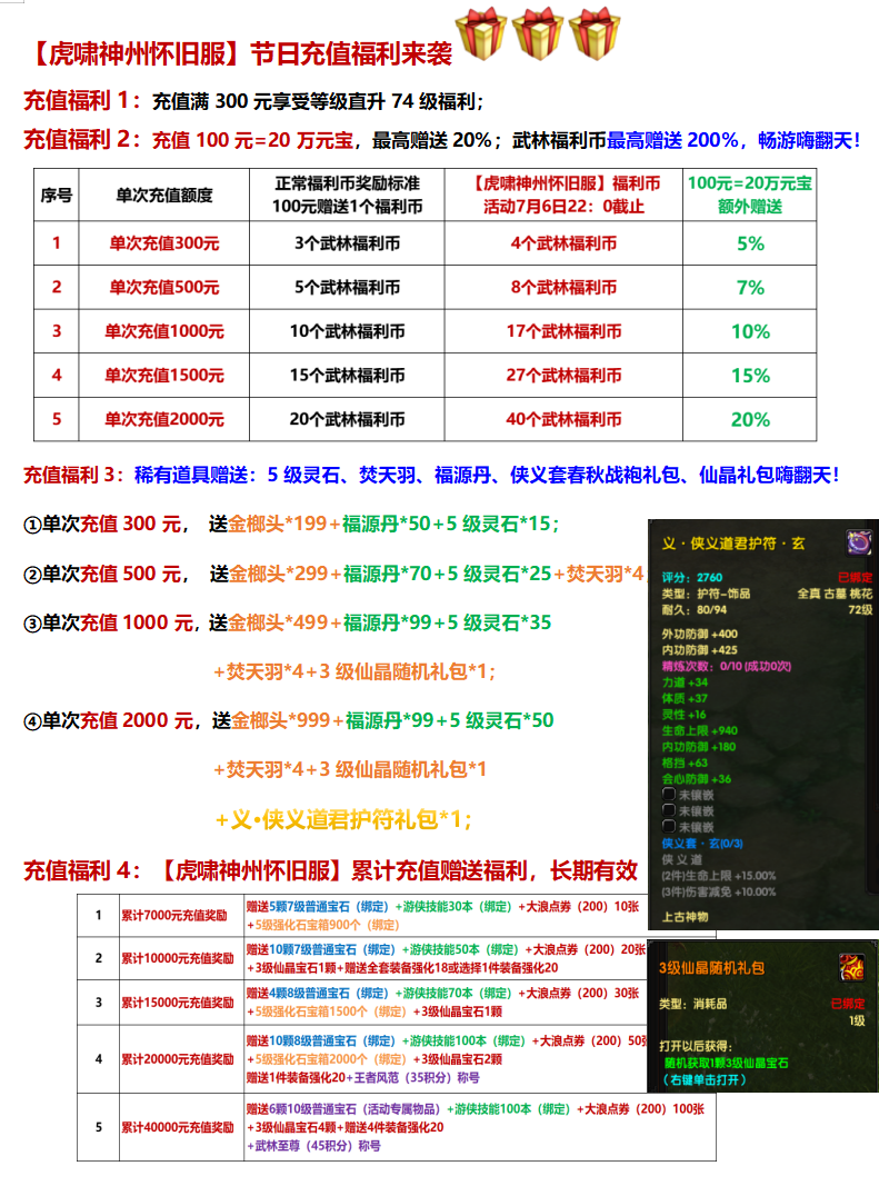 【虎啸神州怀旧服】周末充值活动来袭
