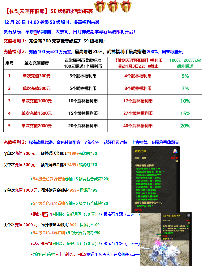 【仗剑天涯怀旧服】58级解封福利来袭