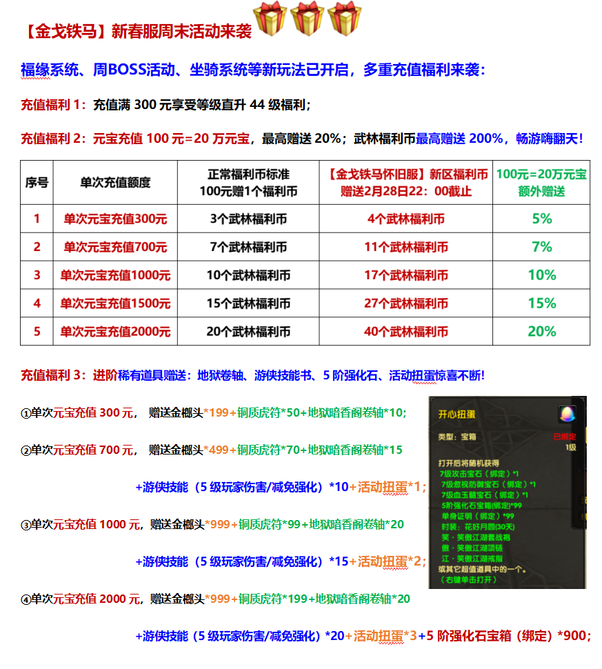 【金戈铁马怀旧服】周末充值福利来袭